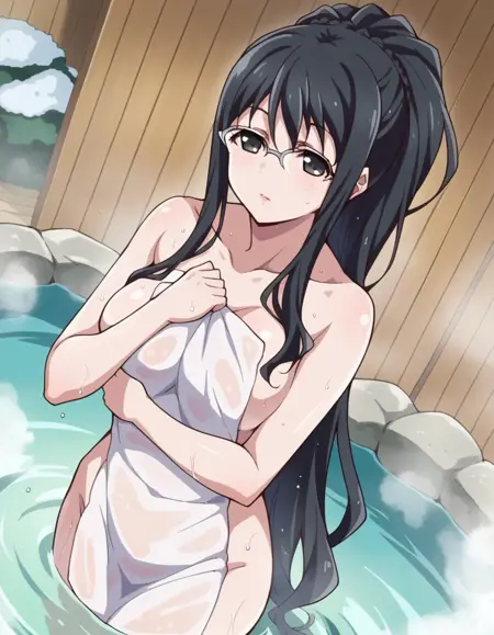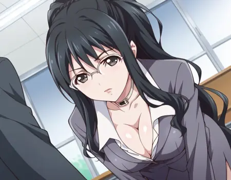 natsuki aoi, long hair, black hair, ponytail, glasses, black eyes,