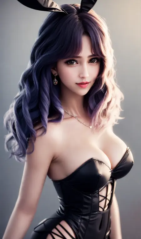 Prompt: long hair, wavy hair, blue hair, center part, brown eyes, lips, collarbone, earring, necklace, black finger nails,