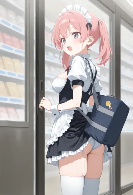 [Illust&XL&Pony] skirt caught on bag / accidental exposure / skirt lift / バッグで捲れるスカート