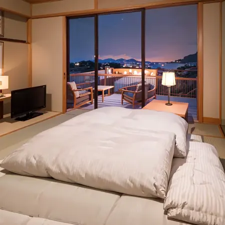 까짓 듯한 향수를 느끼게 하는 전통 일본식 객실이 있는 온천 여관