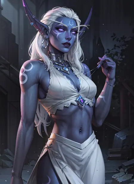 女性夜之子: 1girl, shenightborne, purple skin, athletic