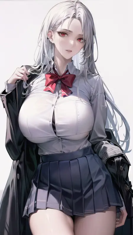 无期迷途-九十九-white hair,red eyes,outfit-asymmetrical clothes, arm tattoo, shoulder armor,red jacket.safetensors