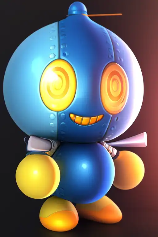 Everyone's favorite annoying Chao, now made as a Lora. The prompt is really long: "Omochao, blue body, waterdrop-shaped head, yellow ripple-like eyes, no nose, round blue torso, orange two-bladed propeller on his head, windup key on his back, gray cable-like arms, round yellow balls for hands, and smooth yellow feet with orange soles,"
