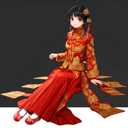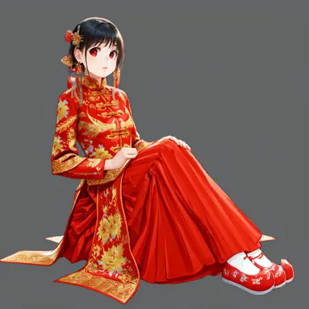 很久没训练过LoRA了,恰好看到一些质量不错的中式婚服图片,顺手练练手。