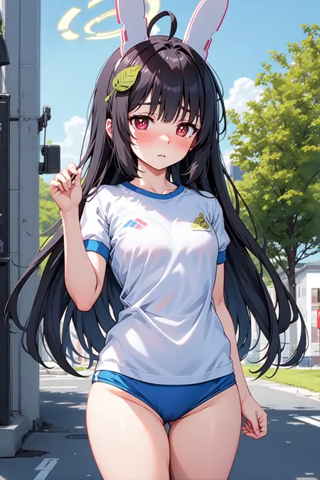 外观:miyu,红眼睛,黑发,长发,齐刘海,天线辫,头顶树叶,假动物耳朵,光环