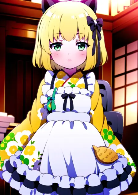 프리마돌의 게카! 옷차림을 "블랙 캣 헤드밴드"와 "프리마 김노"로 프롬프트해 보세요. 그리고 그녀의 파워 소스를 원하신다면 "윙드 백팩"도 시도해 보세요.