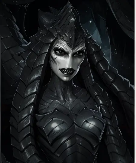 그녀의 촉수 모양 머리카락이나 하체의 라미아와 관련된 프롬프트가 정확히 무엇인지 불확실
