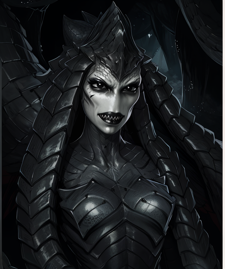 not sure what prompts are associated with her head tentacle hair,? or lower body, lamia,?