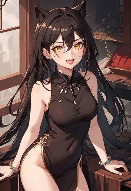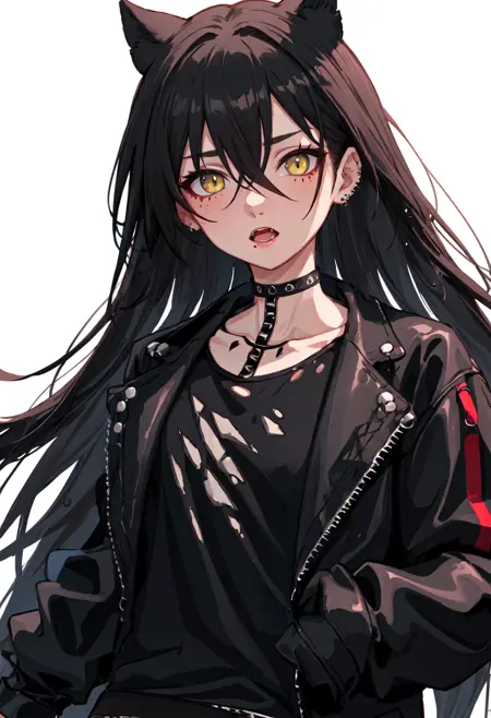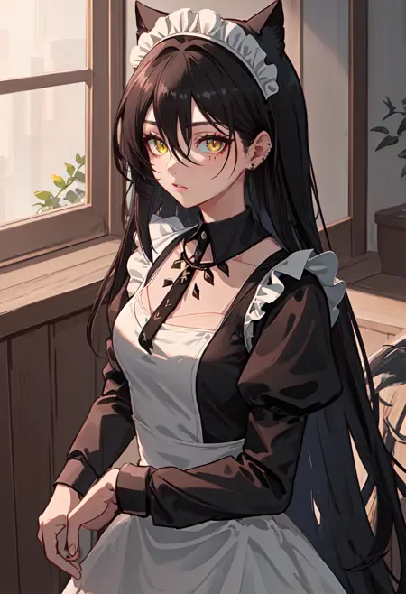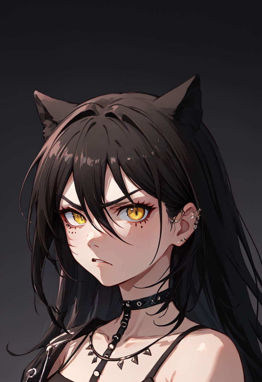 - The pruned character tags are black hair, animal ears, cat ears, long hair, yellow eyes, hair between eyes, tail, very long hair, cat tail, cat girl, extra ears, ear piercing, earrings. You can add them into prompts when core features (e.g. hair color) of character is not so stable.
