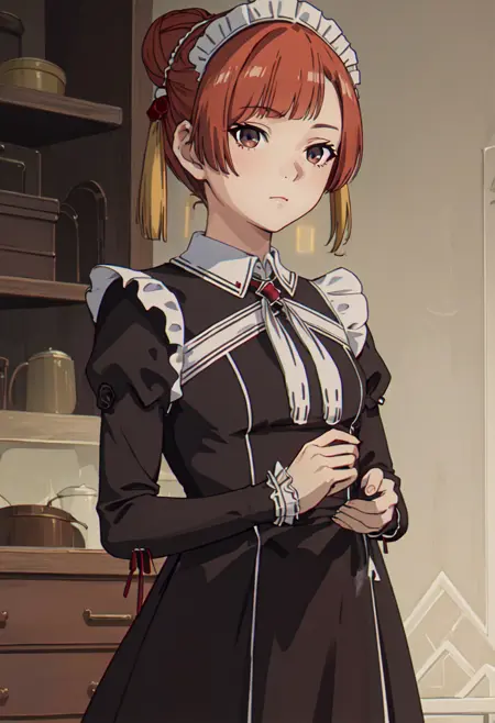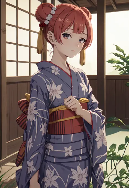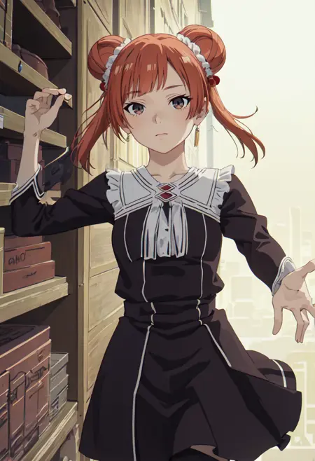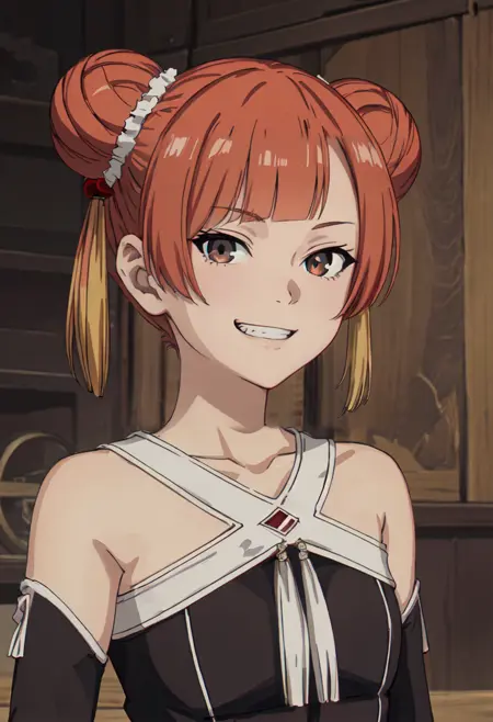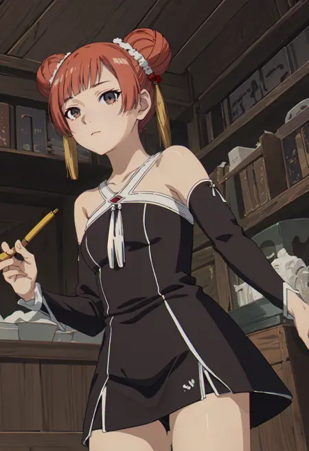 - 필터링된 캐릭터 태그는 머리핀, 이중 머리핀, 빨간 머리, 단발, 갈색 머리, 갈색 눈, 머리 장식입니다. 캐릭터의 핵심 특징(예: 머리색)이 안정적이지 않을 때 이 태그를 프롬프트에 추가할 수 있습니다.