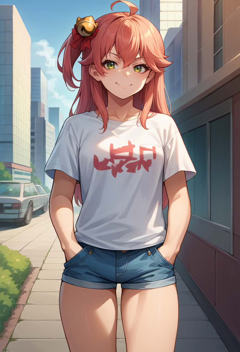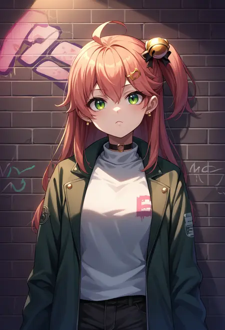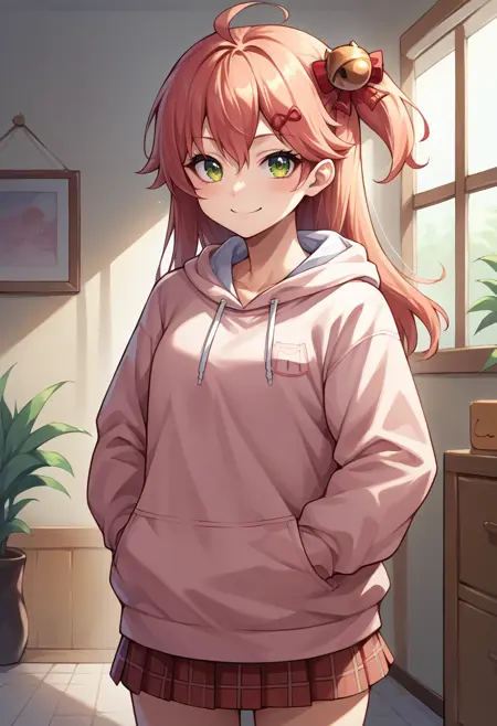 SakuraMiko, long hair, ahoge, one side up, hair bell
