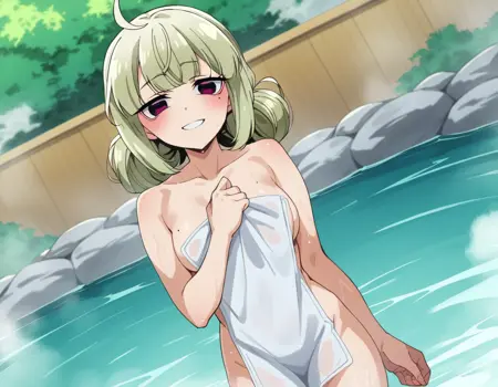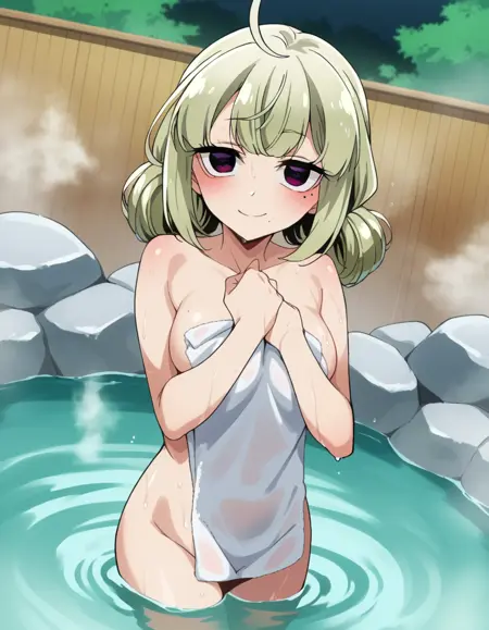 kiwi araga, 刘海, 天线头发, 雀斑, 眼下雀斑, 紫色眼睛, 绿色头发, 发髻, 双发髻,