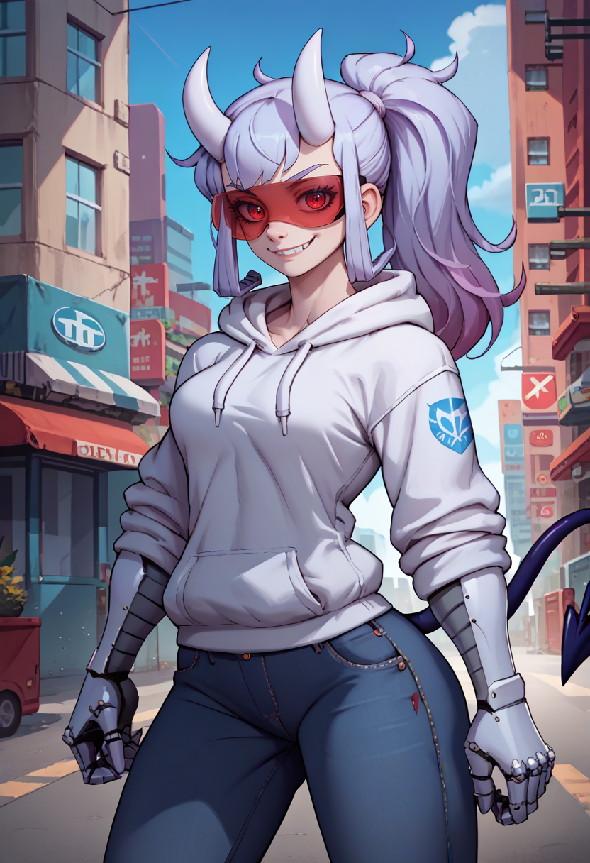 Trigger + Appearance: htloremaster, mechanical arms, ponytail, demon horns, demon tail