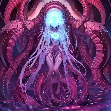 cthulhu,monster,giant,feeler,multiple feeler,blood,scenery,outdoor,no humans,monster girl,light
