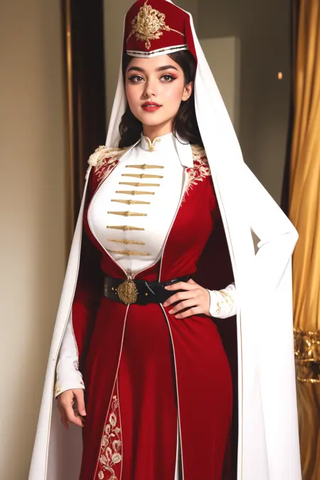 GPT 说: 切尔克斯婚礼礼服体现了切尔克斯人民丰富的文化遗产,他们居住在西北高加索地区,涵盖俄罗斯、格鲁吉亚、土耳其、约旦和叙利亚等多个国家。这些礼服以其复杂的图案、精致的刺绣和奢华的面料著称,彰显新娘的身份与美丽。礼服以白色为主色调,饰有象征性的图案与装饰,常使用金线或银线,寓意纯洁、优雅与人生新篇章的开启。切尔克斯婚礼礼服的精湛工艺展现了社区内根深蒂固的艺术传统与文化自豪感,每件礼服通常为定制制作,被视为传家宝,代代相传。这些礼服不仅仅是服饰,更是历史与传统的载体,凝聚了数百年来切尔克斯人的故事、习俗及其人民不屈不挠的精神,遍及他们所有的家园国家。