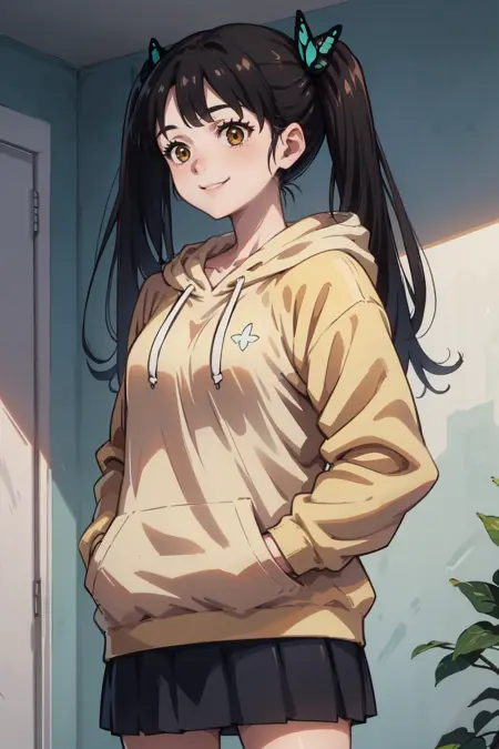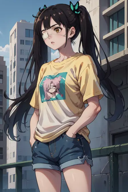 YaeYoshida, eyepatch, twintails, butterfly hair ornament