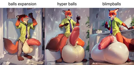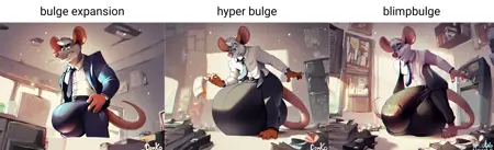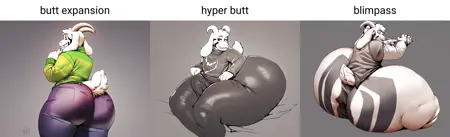 이 모델만의 고유한 태그로는 blimpdick이나 blimpballs이 있습니다. hyper가 충분히 크지 않을 때 사용하세요. 또한 특정 부위를 위한 muscle growth와 pecs expansion도 있습니다. 남성의 옷이 늘어나는 모습을 좋아하신다면 bulge expansion, hyper bulge, blimpbulge 태그도 있습니다. 각 태그는 단독으로 사용하도록 설계되어 크기 선택의 역할을 합니다. 예를 들어 bulge expansion과 hyper bulge를 동시에 사용하면, 단독으로 hyper bulge를 사용한 것처럼 단순히 부풀어 오른 상태가 됩니다.