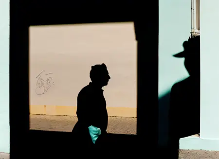 例のプロンプト: shaded street photo of a woman silhouette, closeup, black jeans, long hair, by midday, blue sky, paris street, film photo, flashlight, kodak portra 400