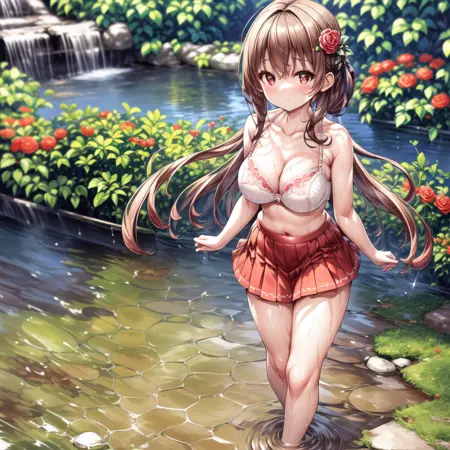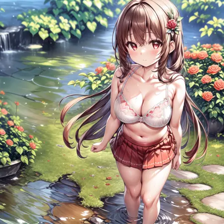座っている、水の中 standing、濡れた髪、びしょ濡れの服、水の中に座っている