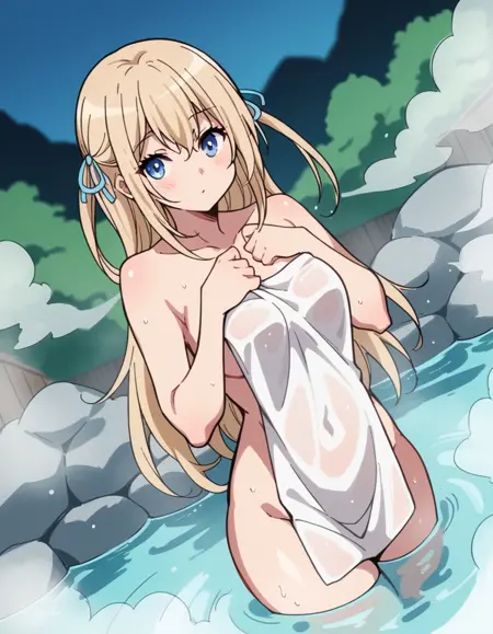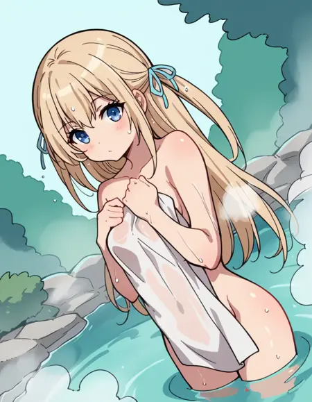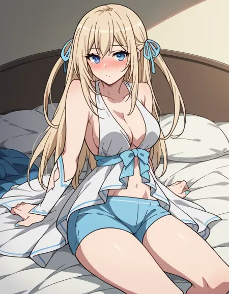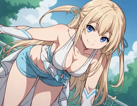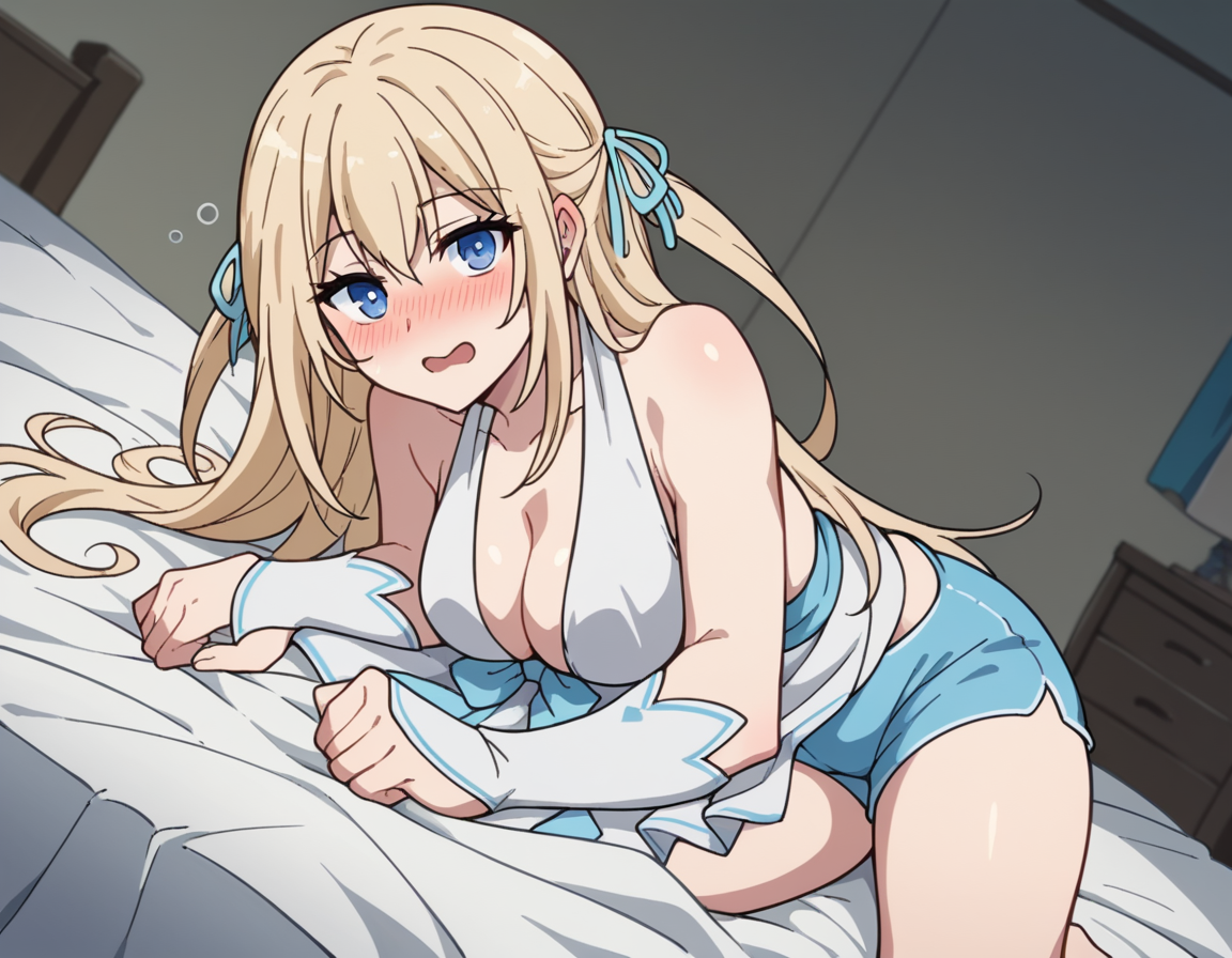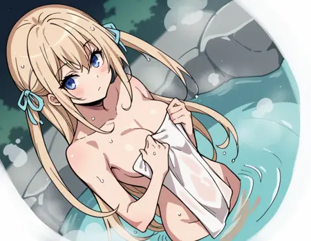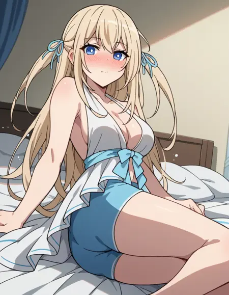 sylphy, blonde hair, blue eyes, hair ribbon, long hair, ribbon, two side up,