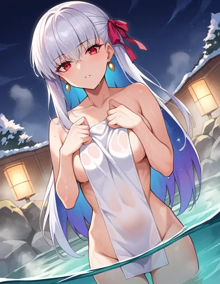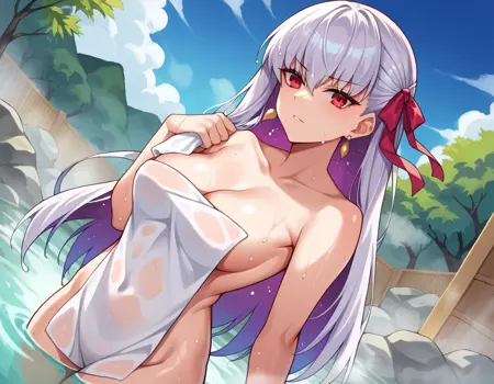 kama, hair ribbon, red eyes, red ribbon, ribbon, long hair, white hair,