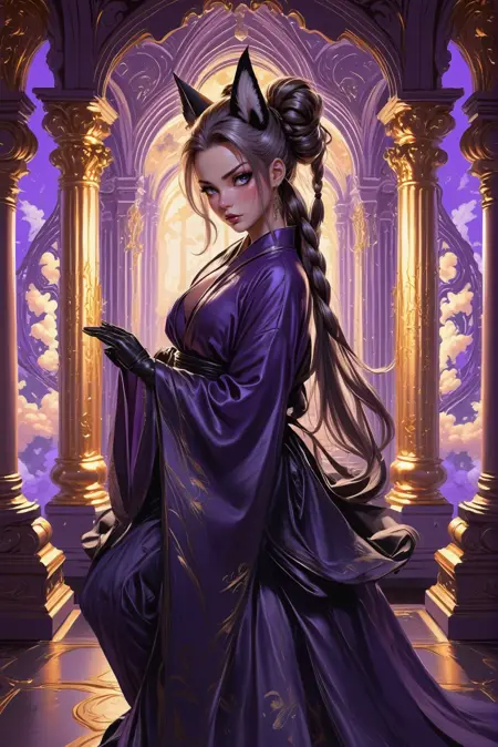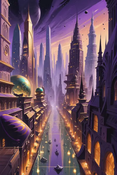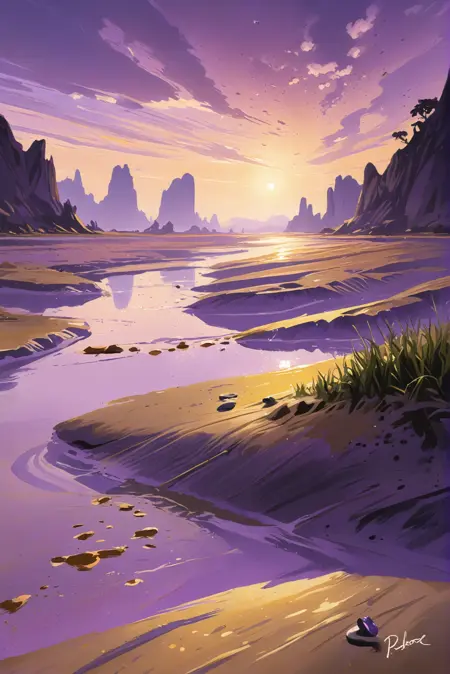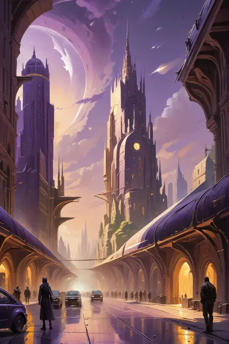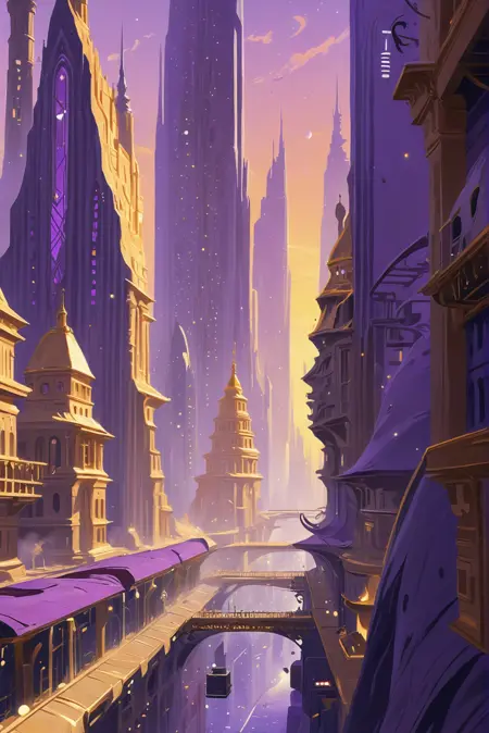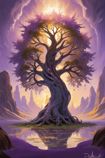 Gives everything a whimsical gold and lavender fantasy look. Use at 1.0 for scenery and up to 1.5 for people.