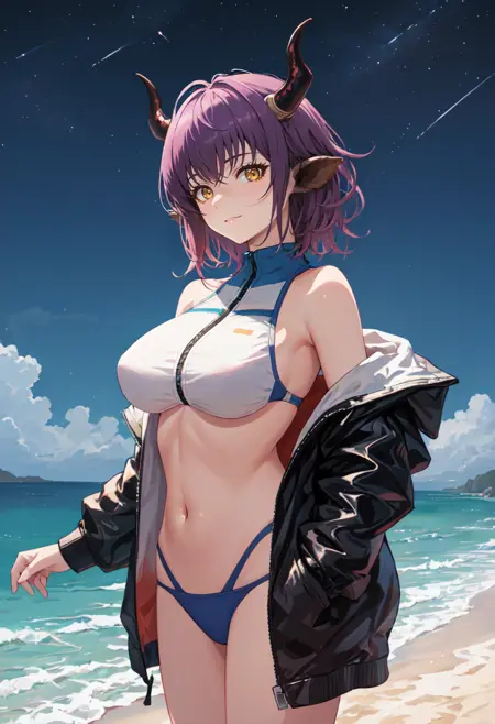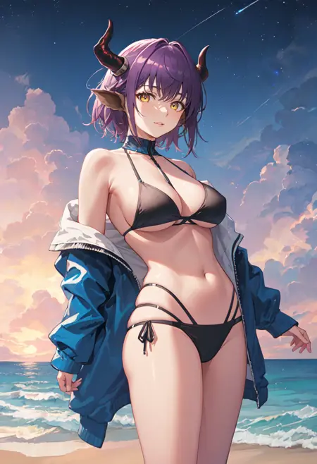 - 削除されたキャラクタータグは以下の通りです:動物の耳、角、牛の角、紫色の髪、牛の耳、胸、短髪、牛の娘、大胸、黄色い目、ビーサン帽、尾、牛の尾、茶色い目。これらのタグは、キャラクターの主な特徴(例:髪の色)が安定しない場合にプロンプトに追加してください。