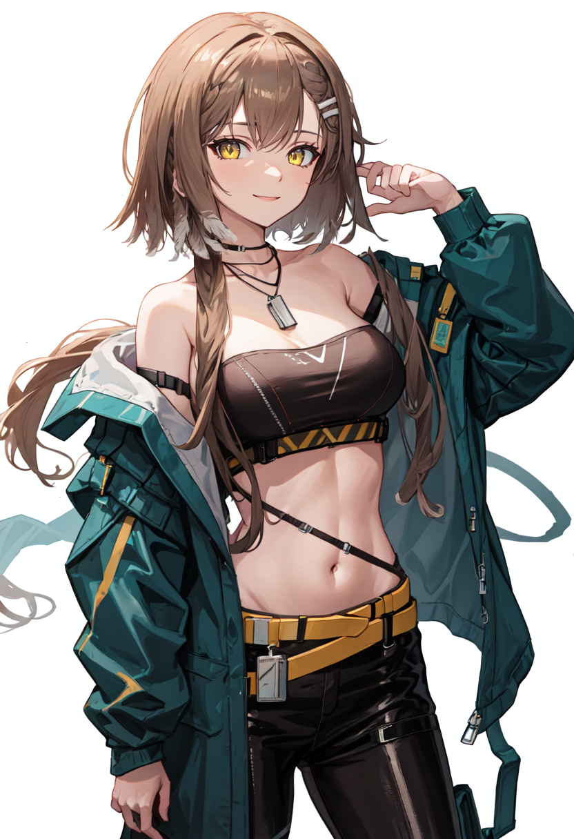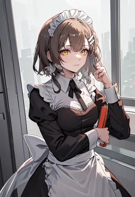 - The pruned character tags are brown hair, breasts, long hair, yellow eyes, hair ornament, hairclip, medium breasts. You can add them into prompts when core features (e.g. hair color) of character is not so stable.