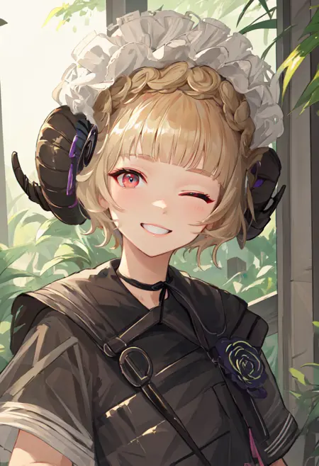 - The pruned character tags are short hair, horns, blonde hair, red eyes, sheep horns. You can add them into prompts when core features (e.g. hair color) of character is not so stable.