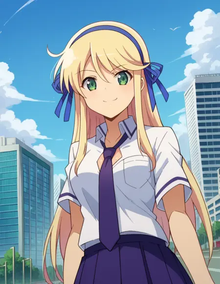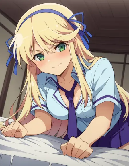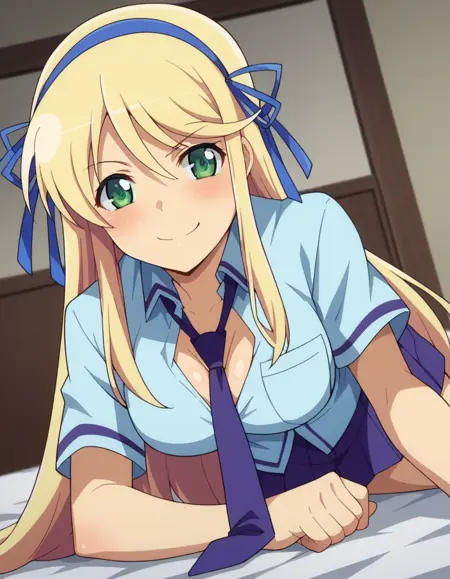 衬衫,露胸,校服,领带,蓝色丝带,蓝色领带,紫色裙子,