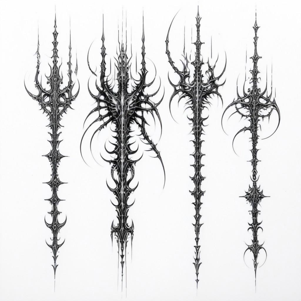 This model is intended for creating tattoo designs in the cybersigilism/neo-tribal style, machine-style sketches, Giger-style sketches, as well as conveying the spirit of cyberpunk.