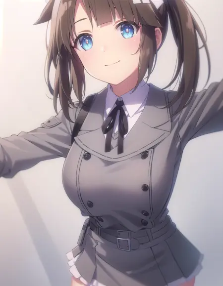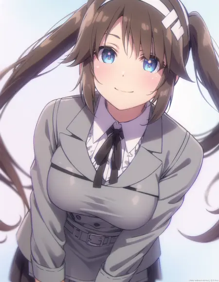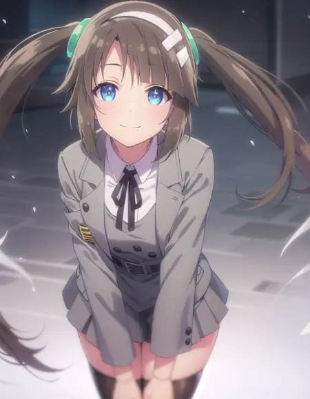 minori,长发,刘海,蓝眼睛,棕发,发饰,长袖,双马尾,侧发,发带,白色发带,