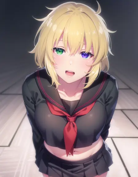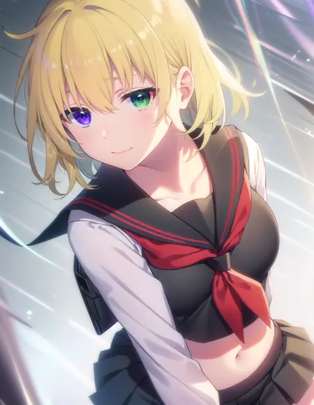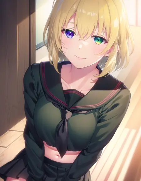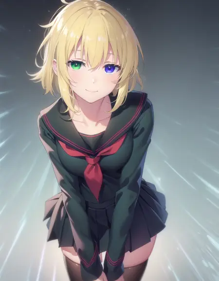 ryona、青い目、金髪、(緑の目:1.3)、ミディアムヘア、(ヘテロクロミア:1.5),