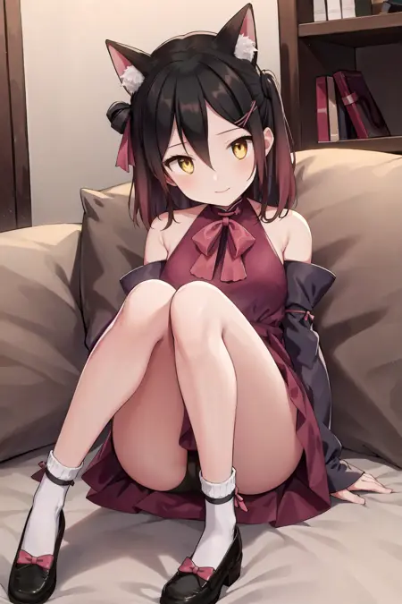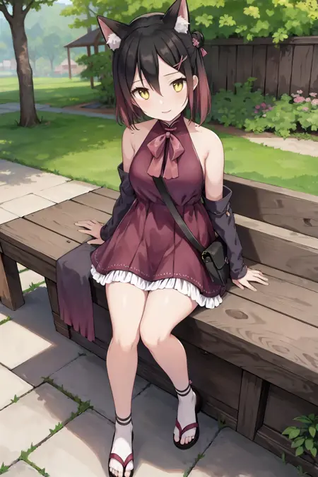 追加タグ:ベレー帽/猫耳、裸の肩, 靴/サンダル。