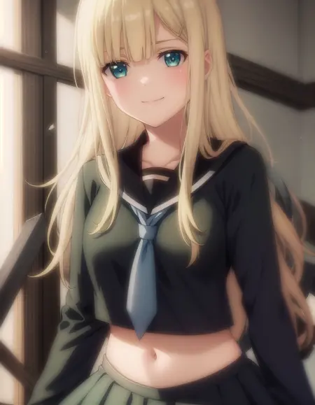 skirt, shirt, long sleeves, navel, school uniform, pantyhose, pleated skirt, necktie, serafuku, midriff, black skirt, sailor collar, black shirt, black sailor collar, (black serafuku:1.2),