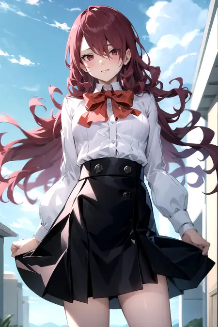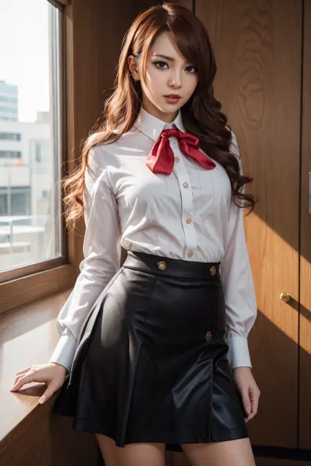 MitsuruKirijou, hair over one eye, skirt, white shirt - For it to work for the base outfit. Recommend removing for other outfits.