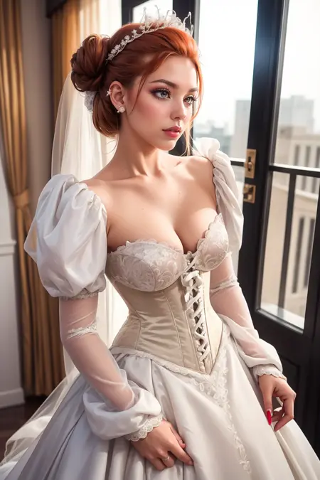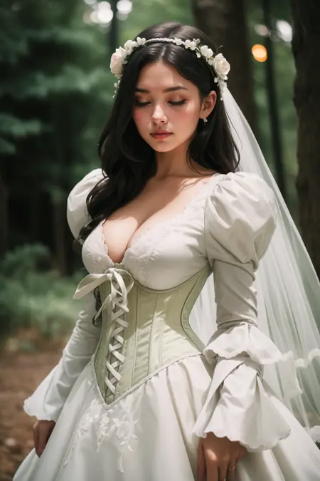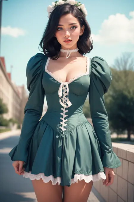 Its a dress with laces on the front, lays down best with corset, bustier, etc