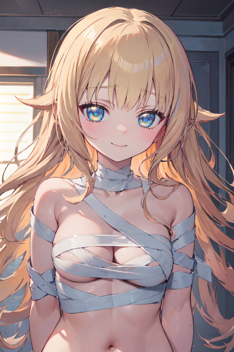Apperance: beelzebubjou, very long hair, hair flaps, large breasts, blonde hair (see tips below)