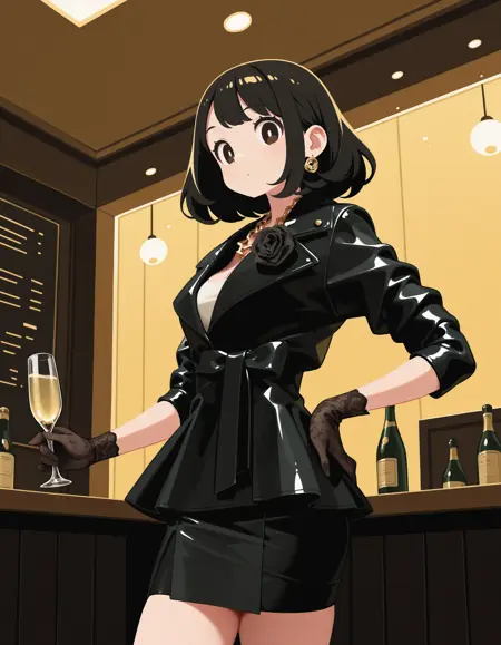 夹克,立领,玫瑰胸花,链条项链,荷叶边,短袖,卷起袖子,腰带,蝴蝶结