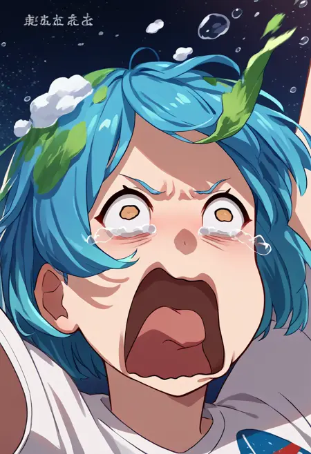 Trigger + Additional Tags: aquascreaming, screaming, open mouth, crying with eyes open