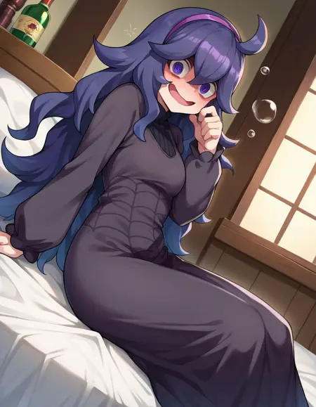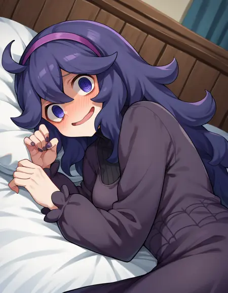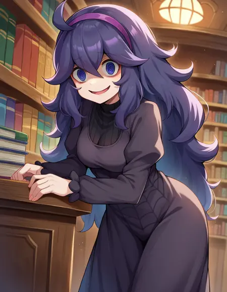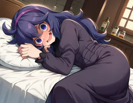 hex maniac, hairband, messy hair, purple eyes, purple hair, purple hairband, @ @,