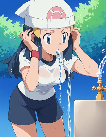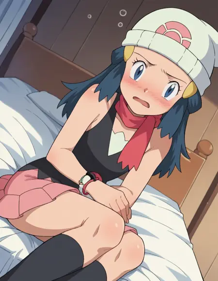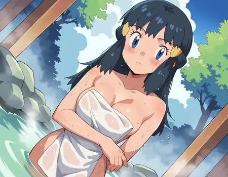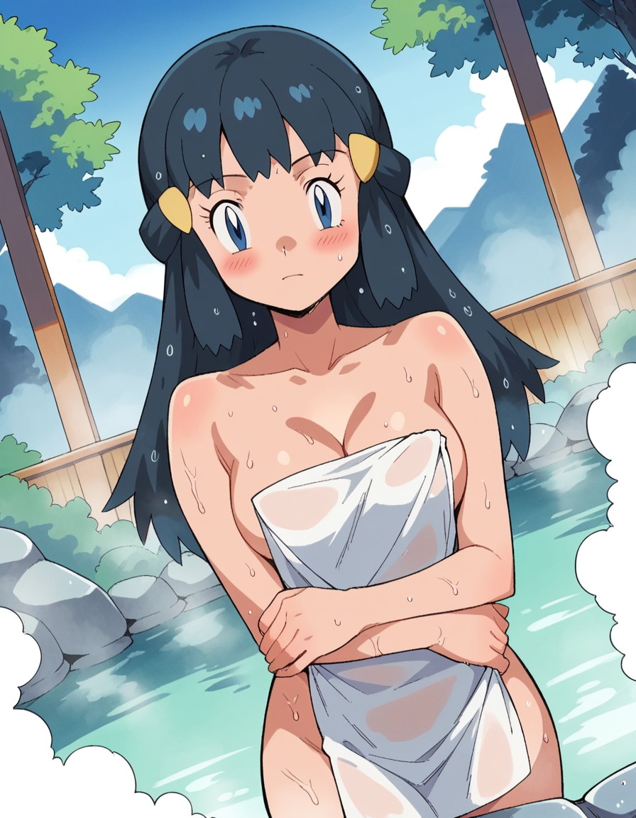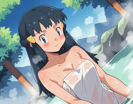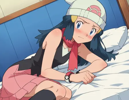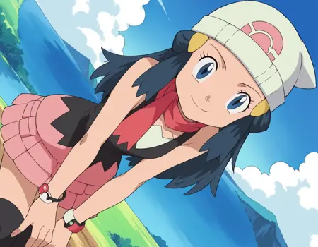 pokemon dawn, black hair, blue eyes, sidelocks, long hair,