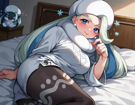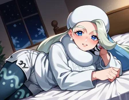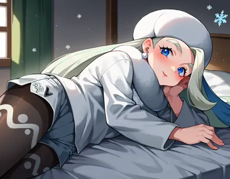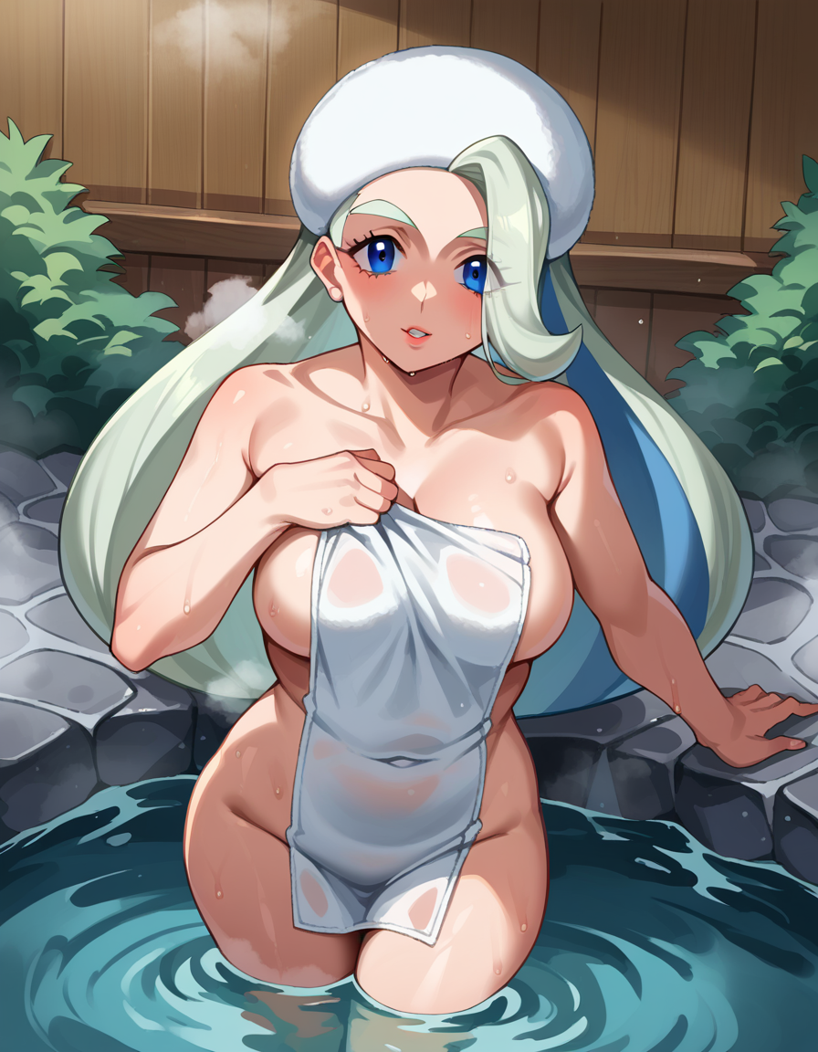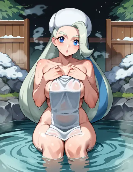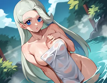 pokemonmelony, blue eyes, eyelashes, long hair, multicolored hair, streaked hair, grey hair,