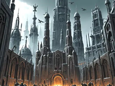 Optionals: symbolism, iconism, statue, heraldry, The Aquila, two-headed eagle, hive world, forge world, research world, shrine world, agri-world, background, Adeptus Astartes, Space Marines, Astra Militarum, Imperial Guard, Gothic, Brutalistic, Dystopian