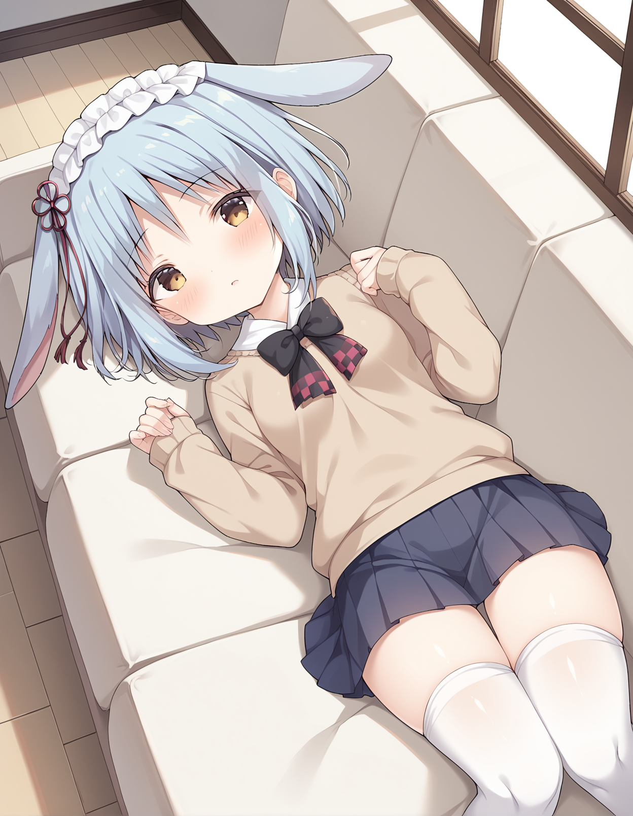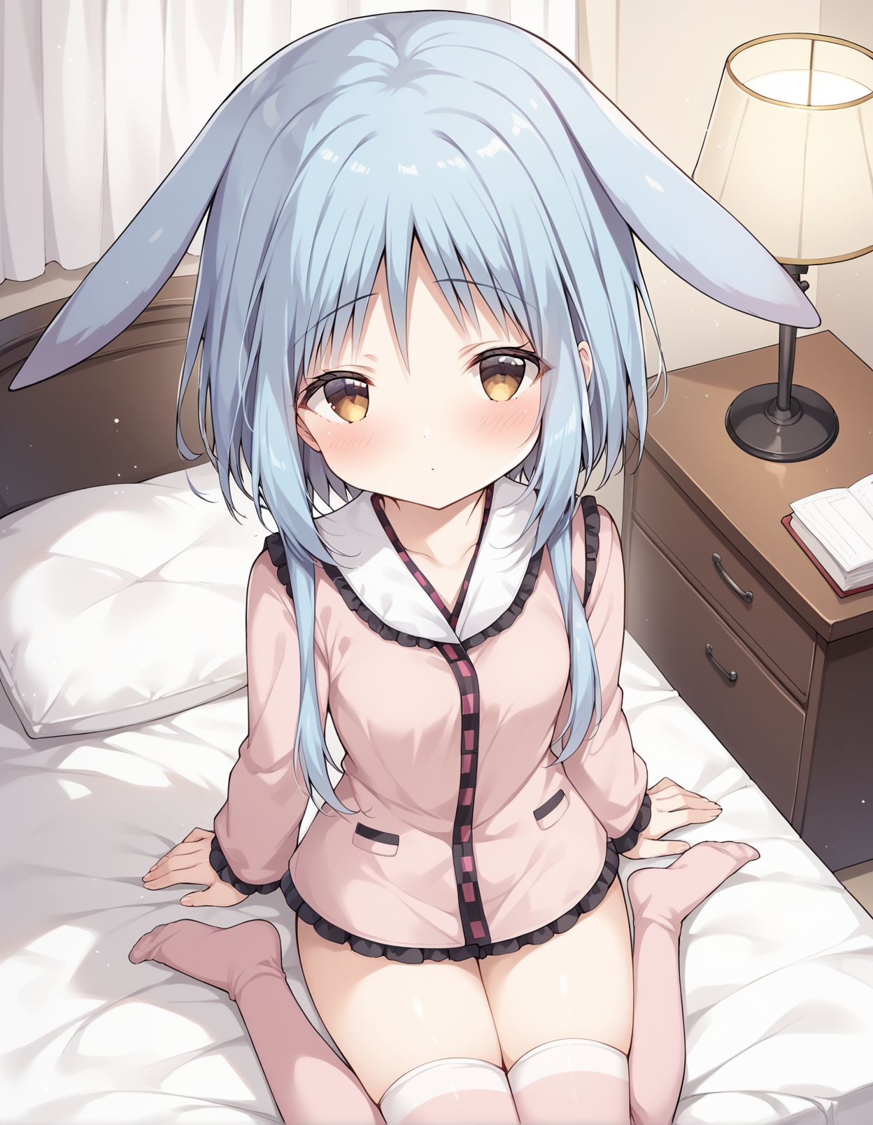 Trigger Word: kaguya momose, 1girl, yellow eyes, blue hair, rabbit ears