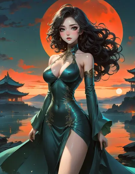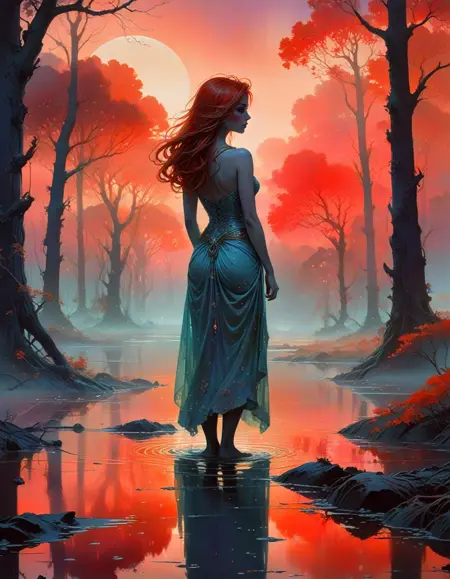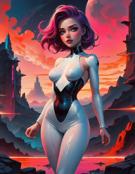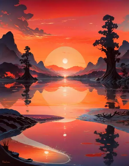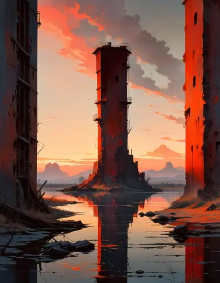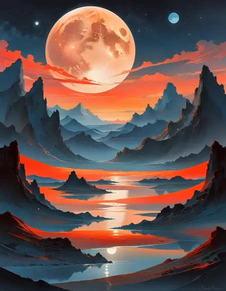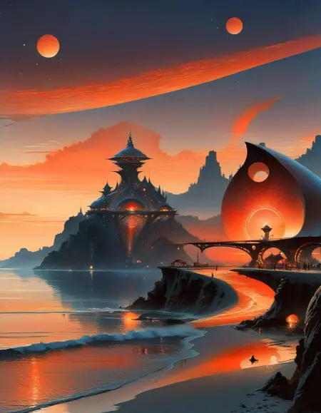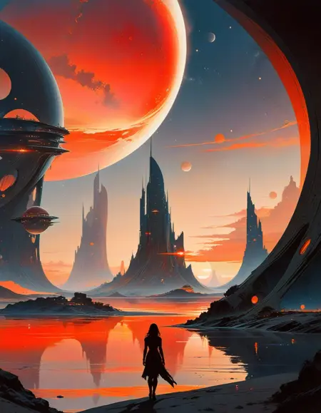 A science fiction style with deep orange sunset colors, giving the appearance of being lit by a dying red star.