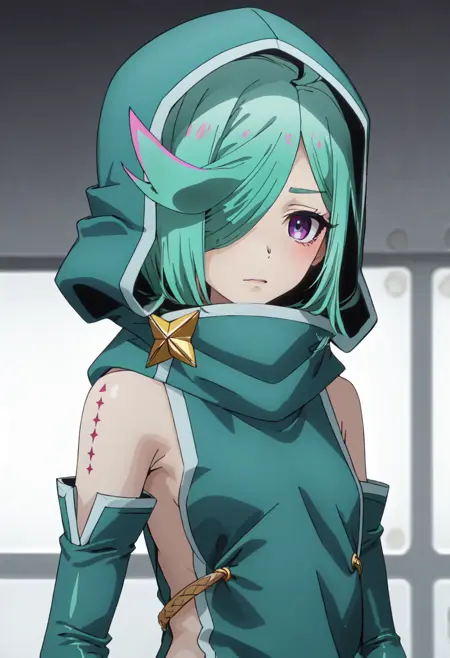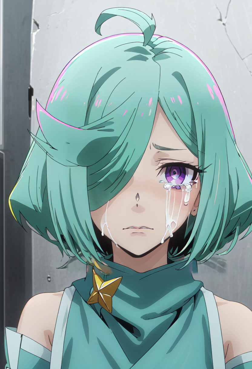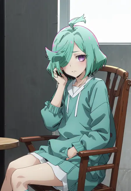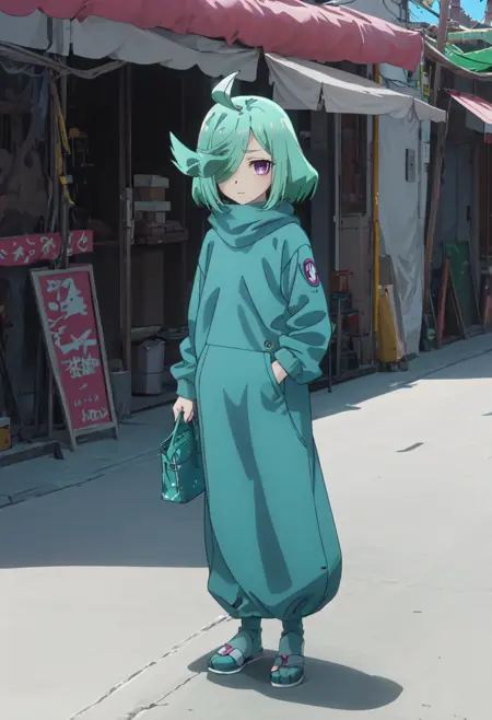 - The pruned character tags are green hair, short hair, hair over one eye, purple eyes, ahoge. You can add them into prompts when core features (e.g. hair color) of character is not so stable.
