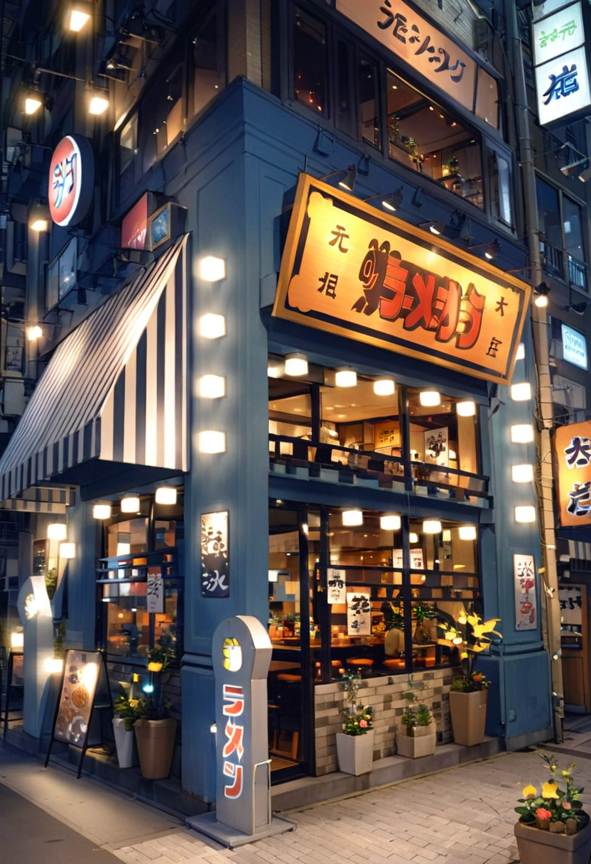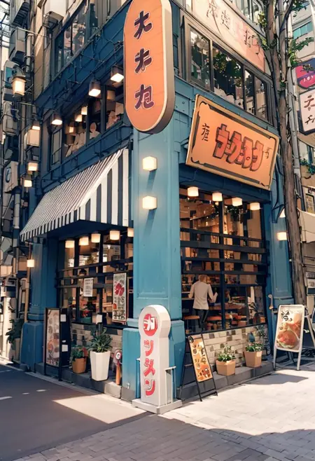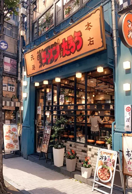 This is LoRA, which may possibly generate an illustration of a landscape similar to the Sannomiya main branch of a certain ramen restaurant in Kobe. これは神戸のとあるラーメン店の三宮本店っぽい風景のイラストがもしかすると生成できるかもしれないLoRAです。 https://maps.app.goo.gl/65upYpzkpHFVDPg96