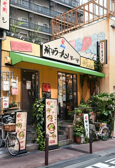 これは再開発事業で無くなってしまった神戸のとあるラーメン店の移転前の三宮本店っぽい風景のイラストがもしかすると生成できるかもしれないLoRAです。https://maps.app.goo.gl/TbNUZn6ZC6Qf6qdM6