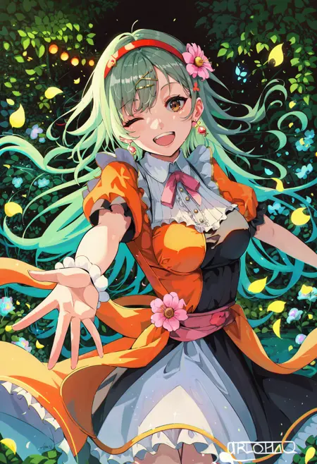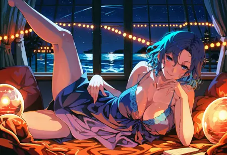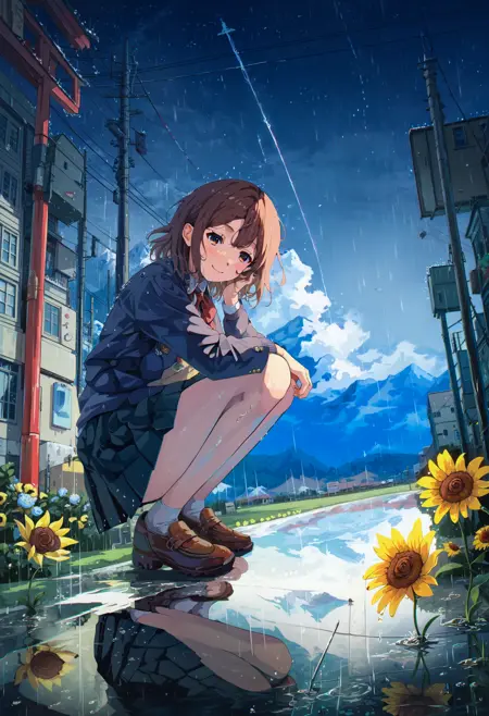 这个LoRA使用了艺术家坂月云的60多张图片进行训练。吸引我的是其色彩和细腻的明暗处理。LoRA本身对提示词的响应效果不错,手和脚的表现也尚可。背景则从“尚可”到“这到底发生了什么?”不等。